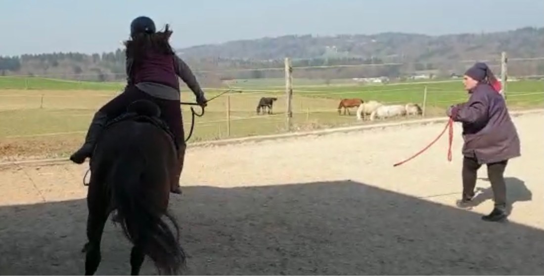 Seit der Ankunft von Farah und Serenata im neuen Stall sind gut drei Wochen vergangen. Sie waren vorher nicht in der gleichen Herde, deshalb waren wir gespannt, wie sie sich verhalten, wenn sie zusammen in einen noch abgetrennten Bereich des neuen Stalls kommen. Zwar hatten wir darauf hingearbeitet, sie miteinander an die Anbinde zu nehmen und mit ihnen zusammen auszureiten, doch war nicht ganz sicher, ob sie sich gut vertragen werden.
