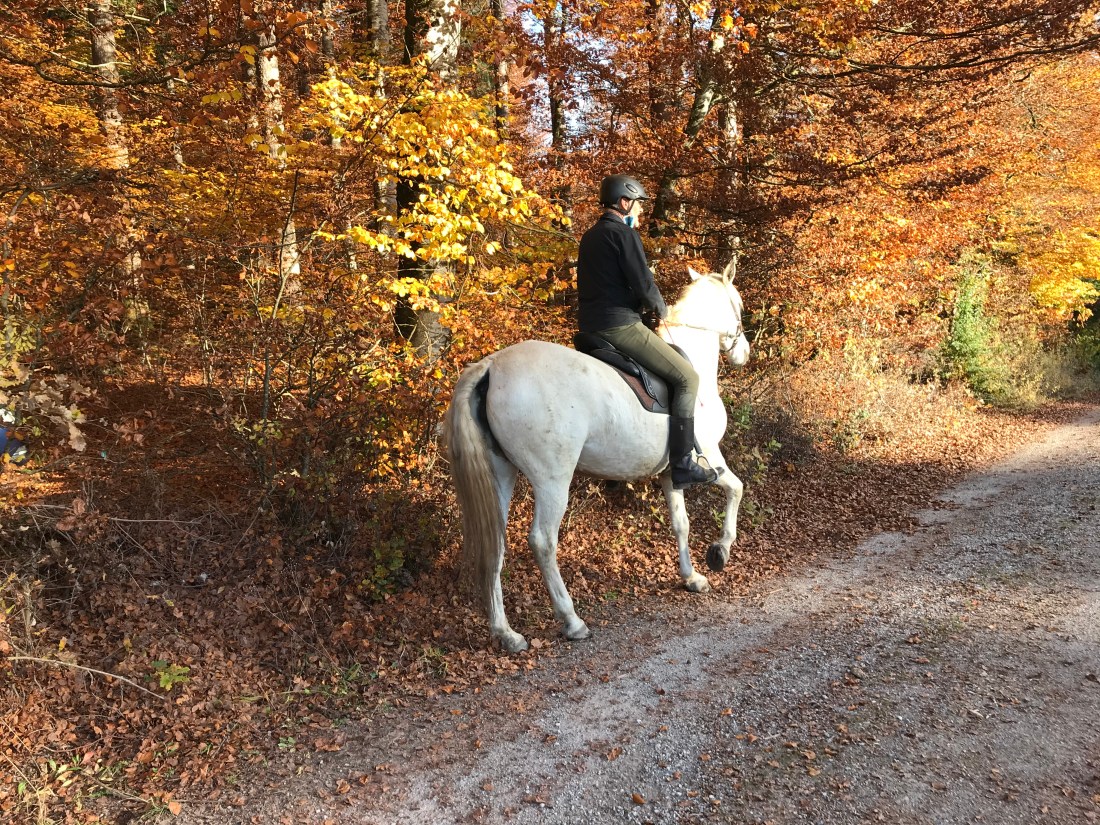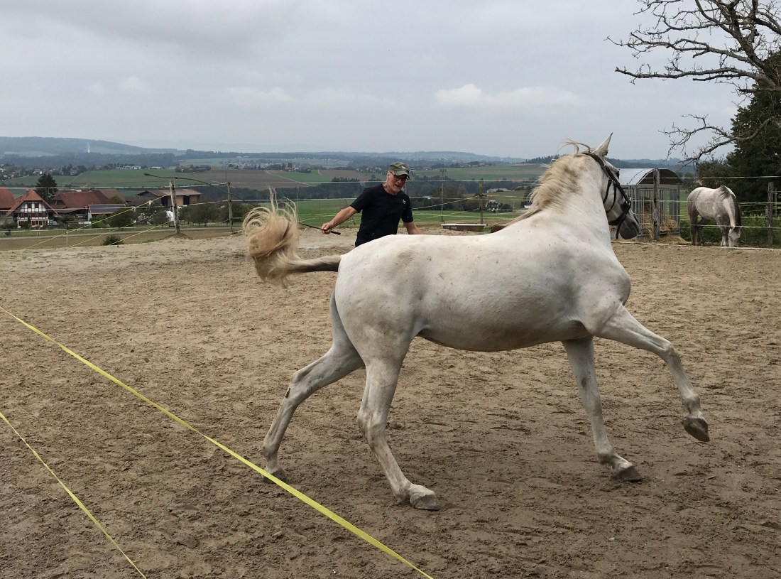 Im Reitunterricht mit Jana macht Farah grosse Fortschritte. Sie hat mittlerweile gemerkt, dass sie nicht immer grad voll losrennen muss, wenn sie geritten wird, sondern dass sie auch lediglich Schritt gehen oder traben darf. Jana kann sie schon ganz gut bremsen und hat mit ihr Schritt-Trab-Schritt-Wechsel geübt, so dass es dann bei mir auch klappen sollte.
