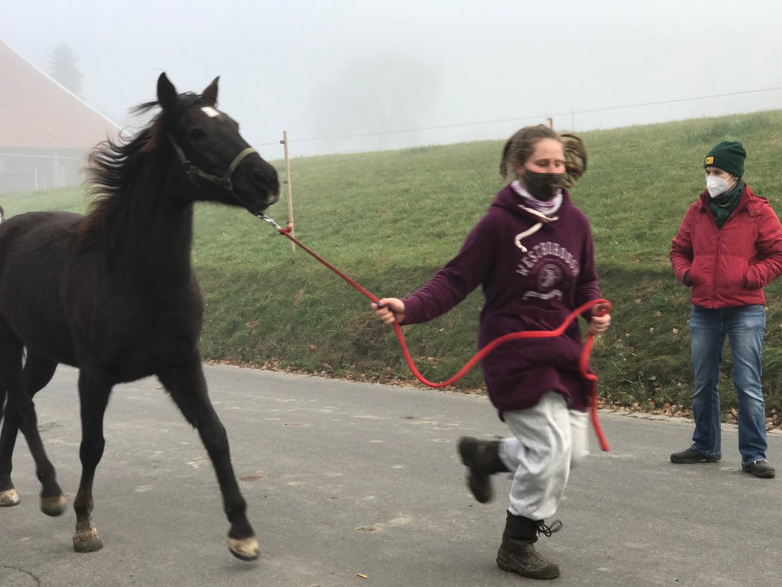 Wenn ich beim Stall bin und Farah mich hört, kommt sie immer schauen und grüssen. Das macht mir grosse Freude! Und ich muss mich wohl noch eine Weile damit begnügen, sie einfach zu streicheln – immerhin lässt sie das mittlerweile ganz unaufgeregt zu – und zu fotografieren.
