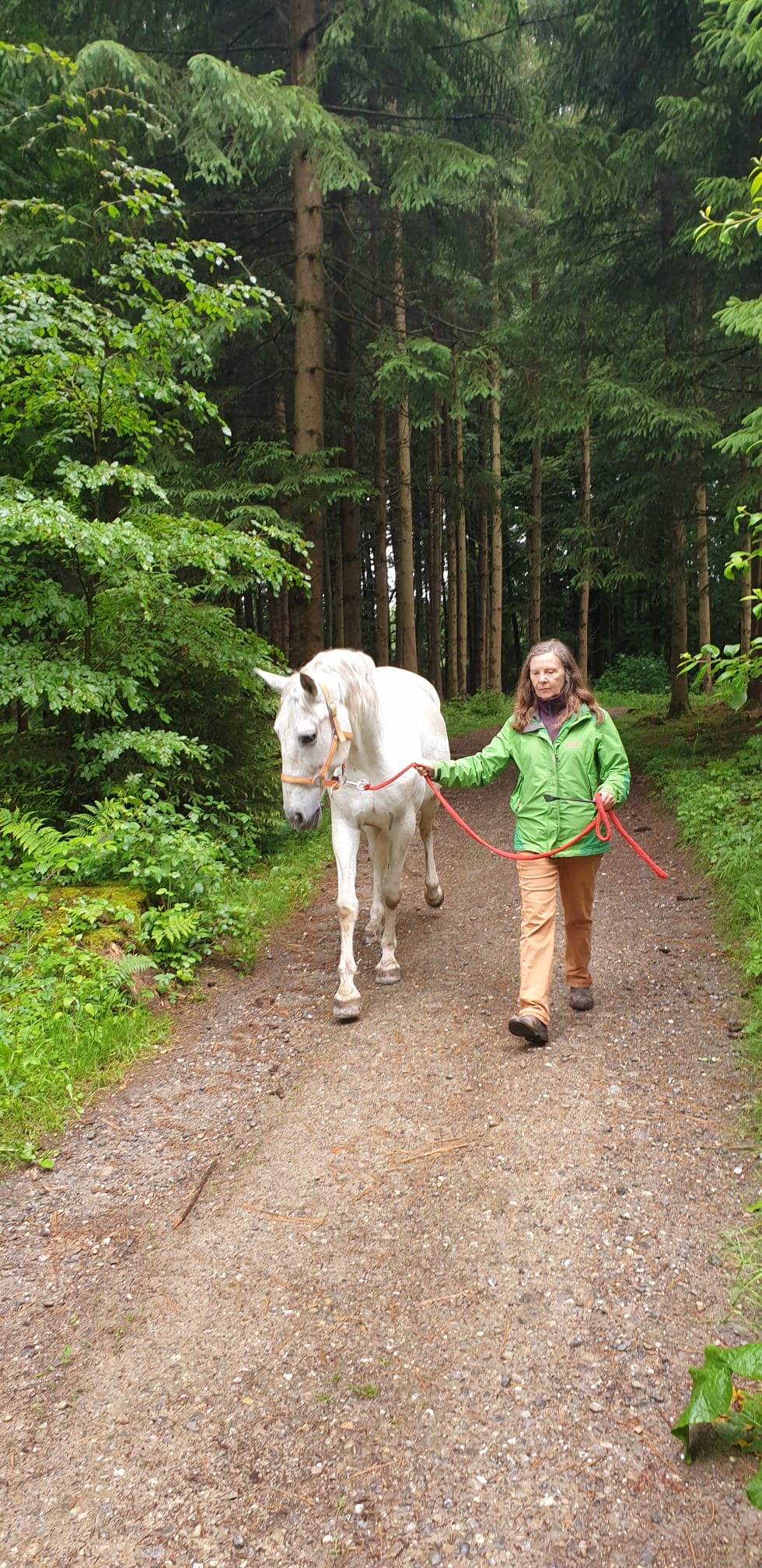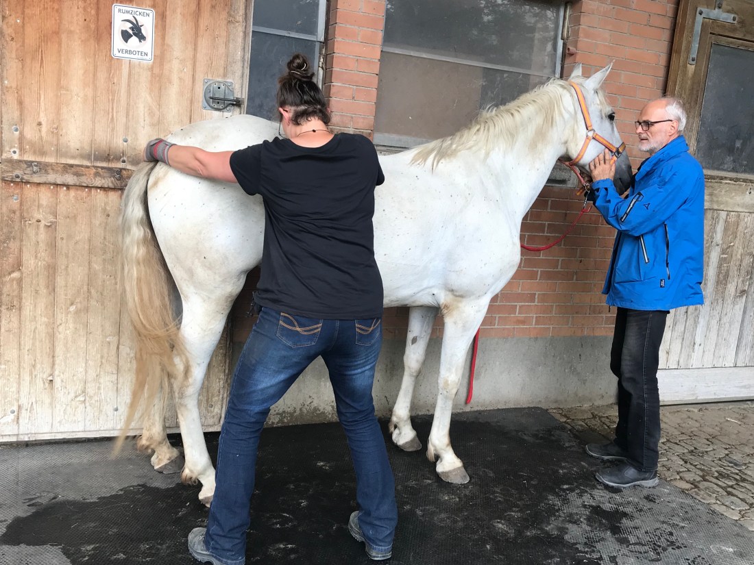In der Zwischenzeit wurde Serenata durch eine Pensionärin betreut, gepflegt und bespasst und von der Stallbesitzerin trainiert. Als wir zurückkamen und sie riefen, kam uns Serenata entgegen – uns schien, doch voller Wiedererkennens- und Wiedersehens-Freude.