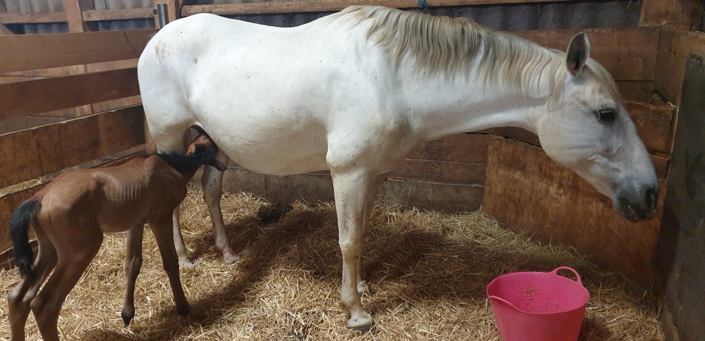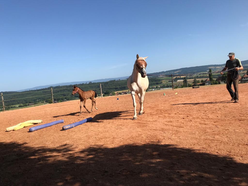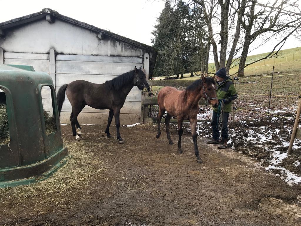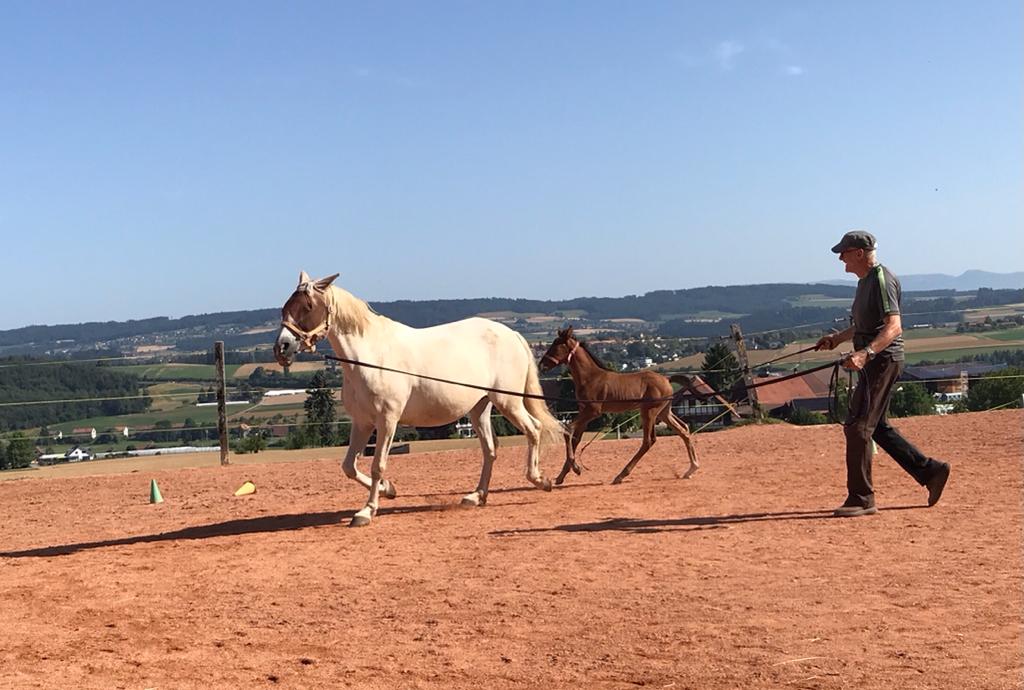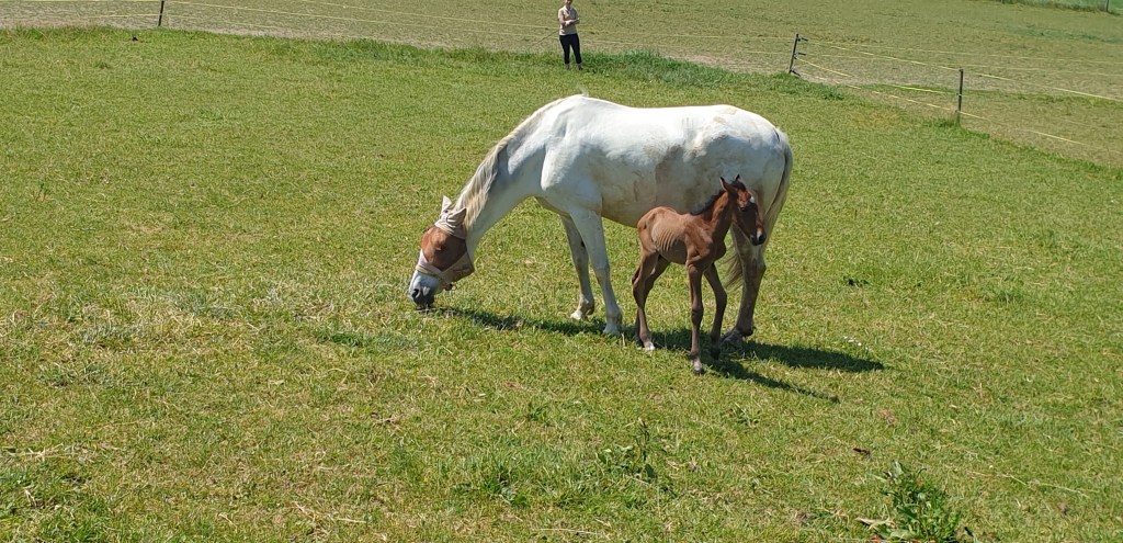 Khan, ihrem Fohlen, geht es prächtig. Er gedeiht, wächst schnell und ist ein liebenswerter kleiner Kerl. Er steht jetzt allein mit Cupidon, seinem wunderbaren „Ziehvater“ im untern Stall. Imran wurde gelegt und steht für ein paar Tage allein in der Box. Idir, ebenfalls gelegt, hat den Stall verlassen. Cupi und Khan sind gut miteinander; komme ich zu Besuch, so kommt Khan sofort zu mir, Cupidon aber ebenfalls. Von beiden beschnuppert, beide kraulend, was will ich mehr. So ein gutes Gefühl.
